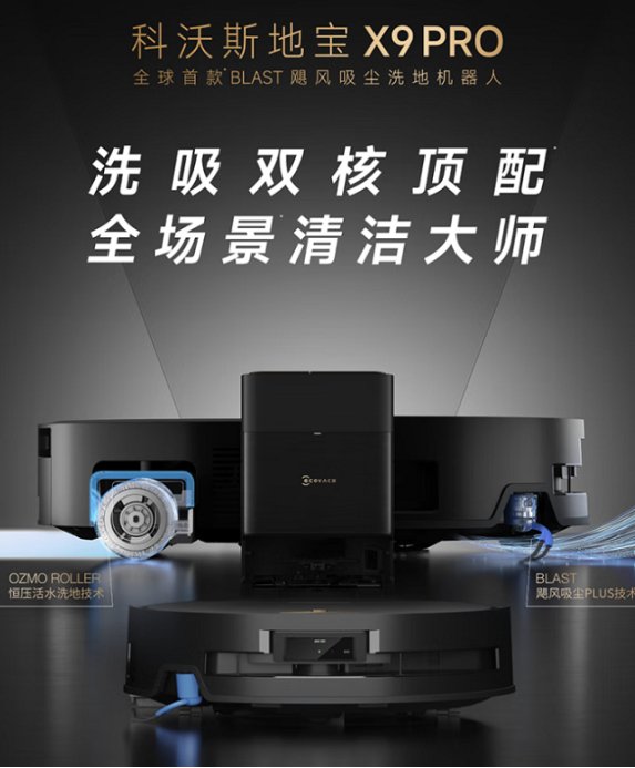 1、科沃斯地宝X9 PRO:16倍清洁力+2倍清洁效率
