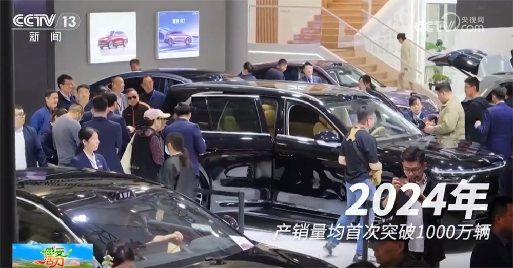 通过数据看活力:2024年,中国品牌乘用车共销售1797万辆,同比增长23.1%,占乘用车销售总量的65.2%。2024年,我国新能源汽车销量达到1286.6万辆,在汽车新车总销量中的占比达到40.9%,连续10年位居全球第一。