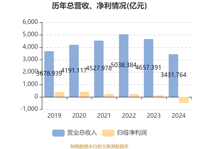 数据显示,2024年公司加权平均净资产收益率为-21.56%,较上年同期下降26.45个百分点。