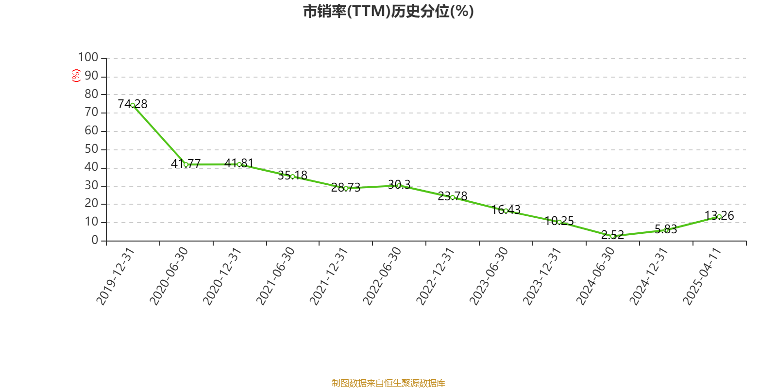 以4月11日收盘价计算,万科企业目前市净率(TTM)约0.32倍,市销率(TTM)约0.19倍。